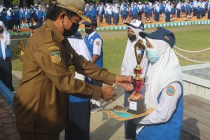 Penyerahan piala kepada pemenang lomba oleh Kepala Dinas Pendidikan Kabupaten Nabire